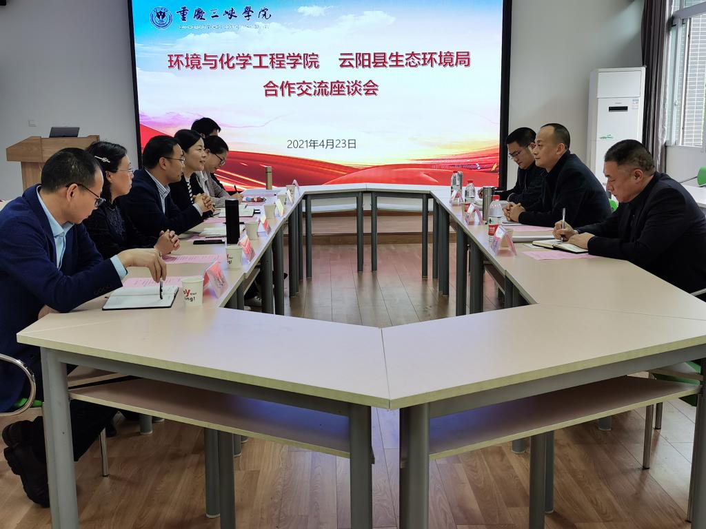 4月23日下午,云阳县生态环境局彭亿峰局长一行到公司进行合作交流。公司领导、市级重点实验室主任助理和教师代表等6人参加了座谈会。座谈会由谢昆书记主持。