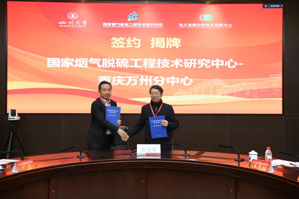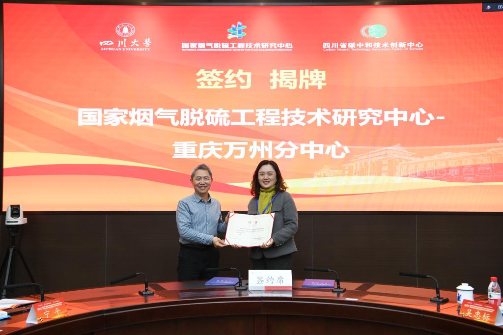 12月15日上午,分中心揭牌仪式在四川大学隆重举行。万州区委常委、区政府副区长、党组成员王建平,万州区科学技术局党组成员、副局长谭韵,公司副董事长祁俊生,公司副经理黄美英,四川大学科学技术发展研究院经理刘超,国家烟气脱硫工程技术研究中心主任汪华林院士,国家烟气脱硫工程技术研究中心副主任李建军出席仪式。公司教师代表、有关企业代表到场参加。揭牌仪式由四川大学碳中和未来技术公司常务副经理江霞主持。