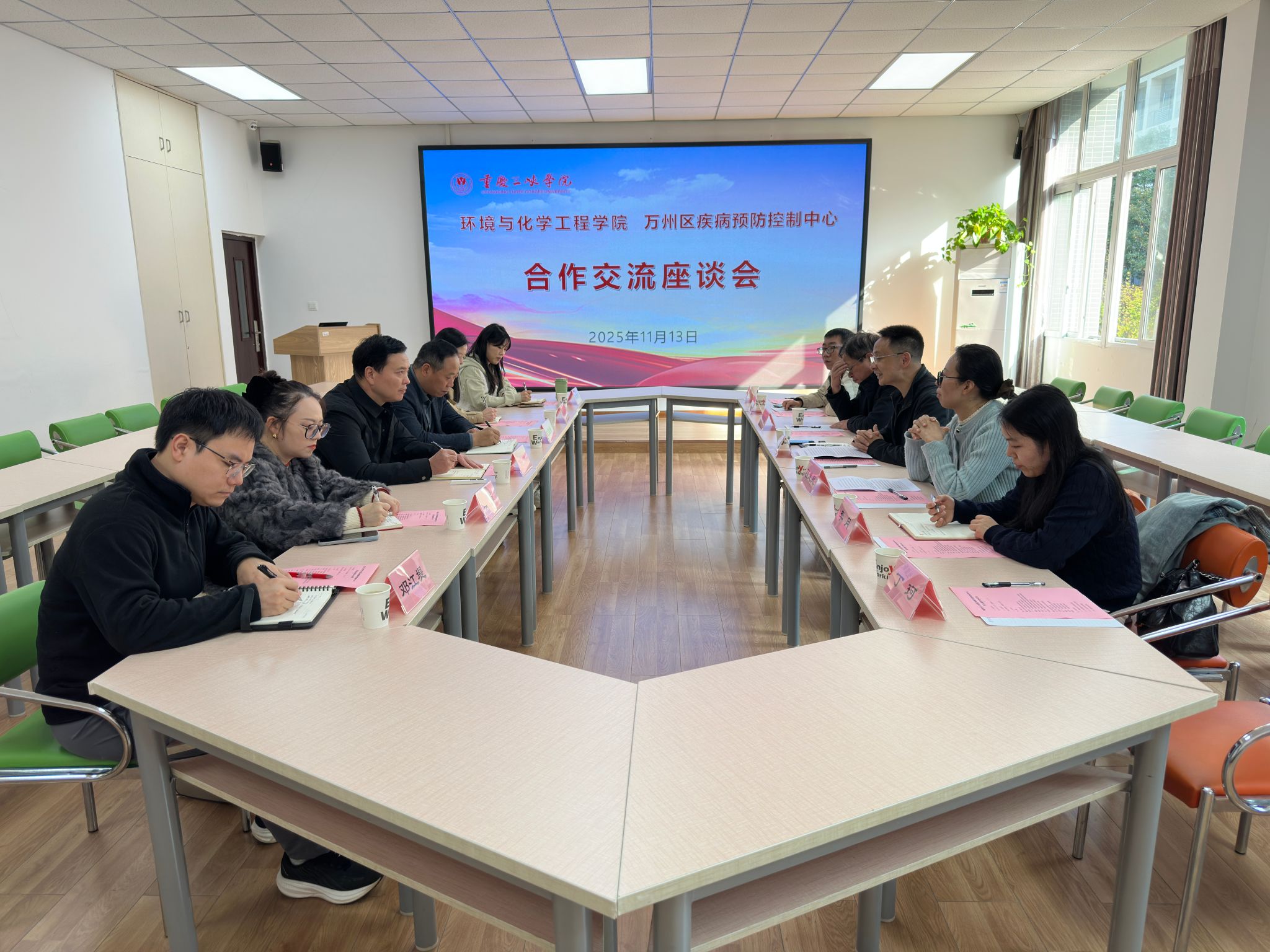 11月13日下午,重庆市万州区疾病预防控制中心副主任张学健一行5人来到公司进行合作交流。公司党总支书记刘健、环境工程系主任兰国新及相关教师代表参加了座谈。