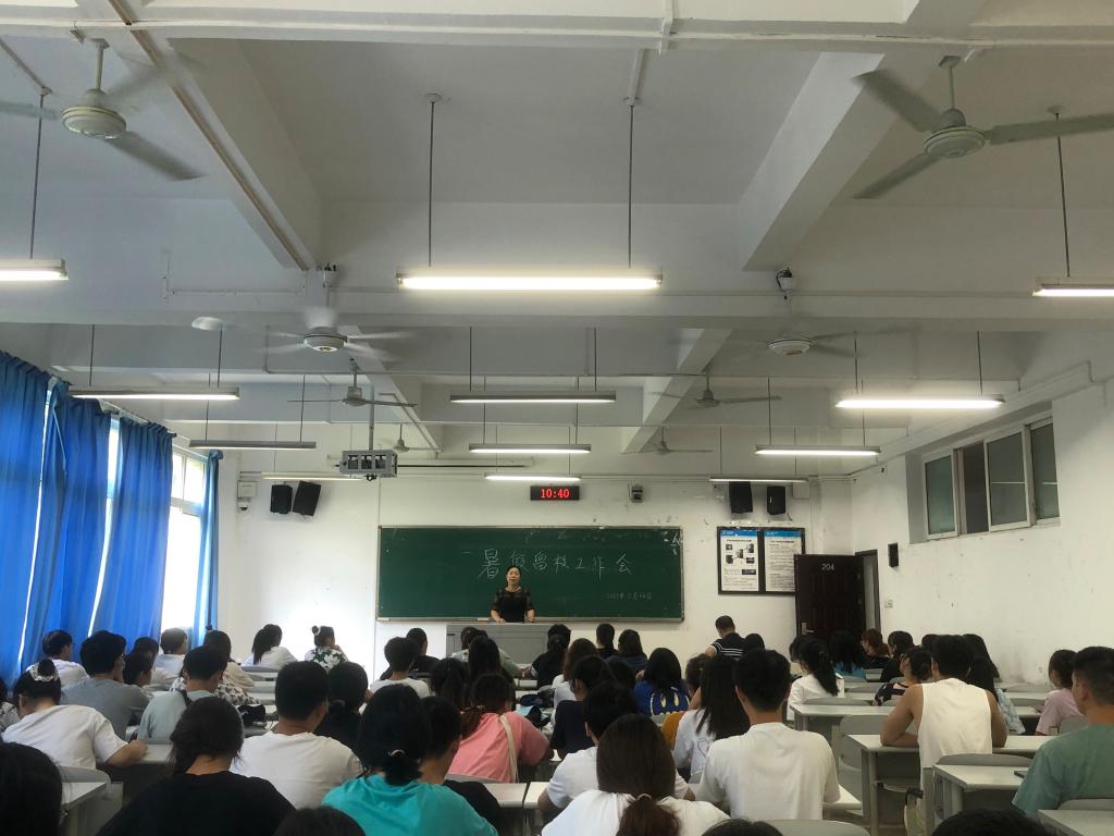 为确保2021年暑假留校员工安全,切实履行好公司安全管理责任,7月14日上午,环境与化学工程公司于明辨楼1-204召开2021年暑假留校员工工作会议,公司党总支书记谢昆、党总支副书记代小菊、全体辅导员和公司100余名暑假留校员工参加会议。会议由学工办副主任周强主持。