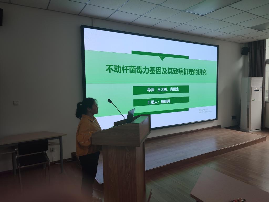 贾凯涛、付金帅、马骅、董宏鑫、唐明凤五位研究生分别从三峡库区消落带土壤氮矿化及温度敏感性影响因素;矿山镉污染生物修复技术;微塑料添加对土壤动物的影响;冻融循环对累积土壤呼吸和微生物碳、氮的影响和不动杆菌毒力基因及其致病机理的研究等方面结合PPT进行论文汇报。五位研究生各自精心准备,从论文的研究目的、研究问题、论文框架、理论基础等方面进行介绍。活动中,评委老师就每位选手的论文汇报进行认真点评,并给予了宝贵的修改意见。