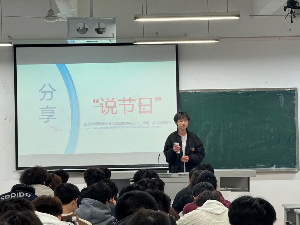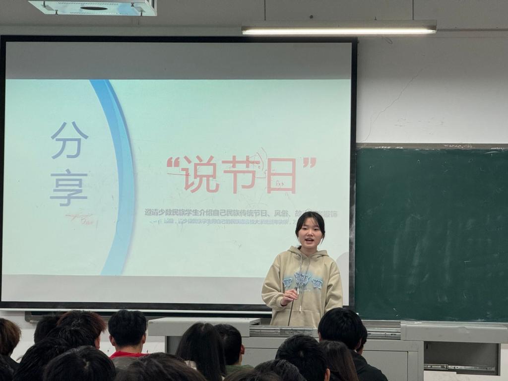 活动现场,回族员工马艺菲、瑶族员工邓朝甲更是热情分享了自己民族的传统节日、风俗习惯、动人故事以及绚丽多彩的民族服饰。他们用真挚的情感和生动的讲述,让在场的每一位同学都能深切感受到中华民族的多元一体文化的独特魅力。