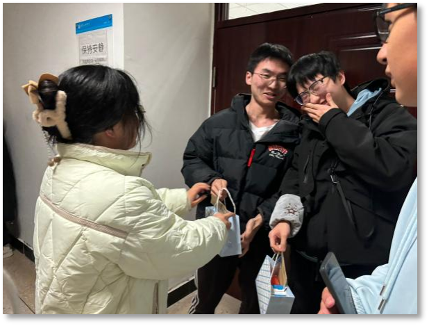 每一份礼物都经过精心挑选,饱含着对考研学子的殷切期待,也传递着公司的深情厚谊。宋老师与同学们亲切交谈,详细了解他们的备考进度与生活情况,耐心倾听他们的压力与困惑,并给予鼓励与支持。