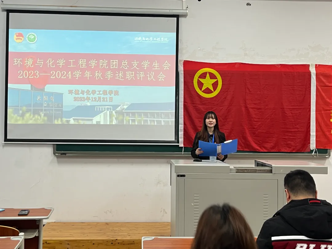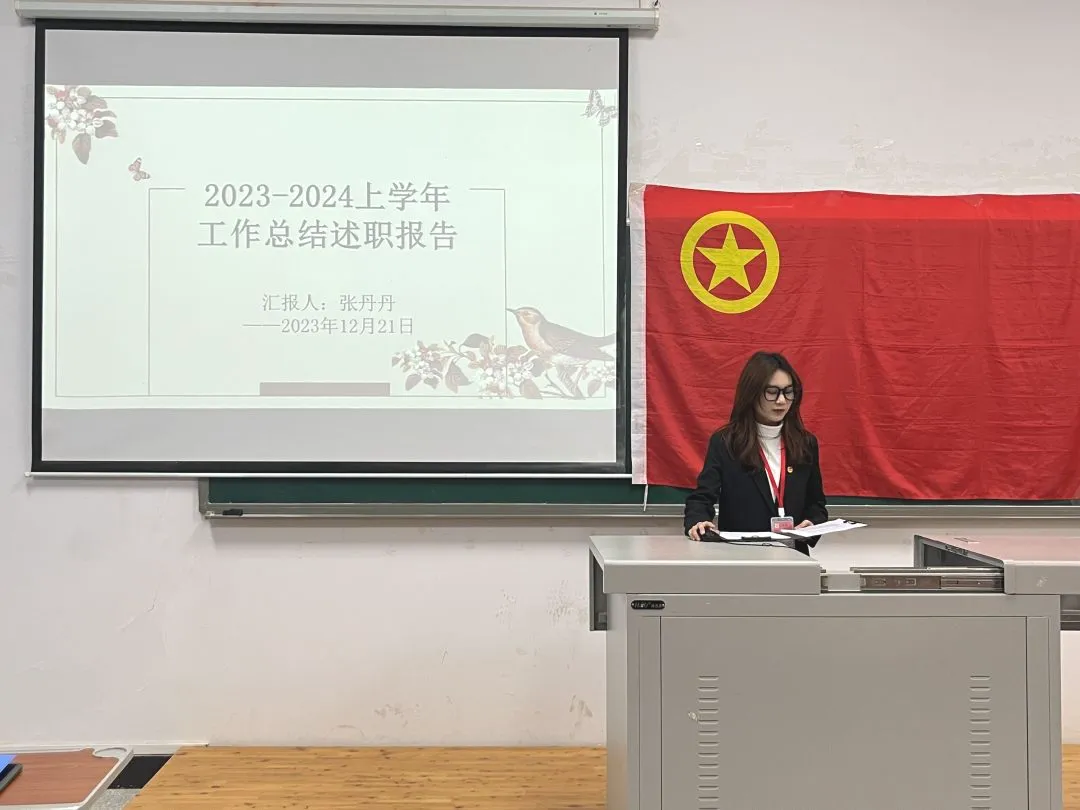 2023年12月23日下午,2026世界杯官方合作网站团总支2023-2024学年秋季学期工作述职大会于慎思楼4栋514开展,员工第一党支部书记宋明亮出席,主席团成员、各部门负责人参加,肖雨欣主持本次大会。