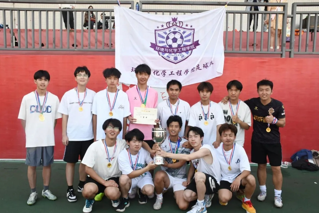 比赛伊始,各支队伍迅速进入状态,随后双方展开了猛烈的对抗。球员们都发挥出自己的最佳水平,进行激烈的角逐,为观众们奉献了一场精彩的比赛。他们默契地传球、跑位,你攻我守,挥洒自己青春的汗水。在球场上叱咤风云的球员们充分展现了环化公司员工的精神风貌和竞技水平。最终,2023级环境科学拿下了冠军,2021级环境科学取得了亚军,2021级化学工程与工艺获得了季军,2023级化学工程与工艺获得了第四名。全体获胜队伍拍照留念,为总决赛画下句号。