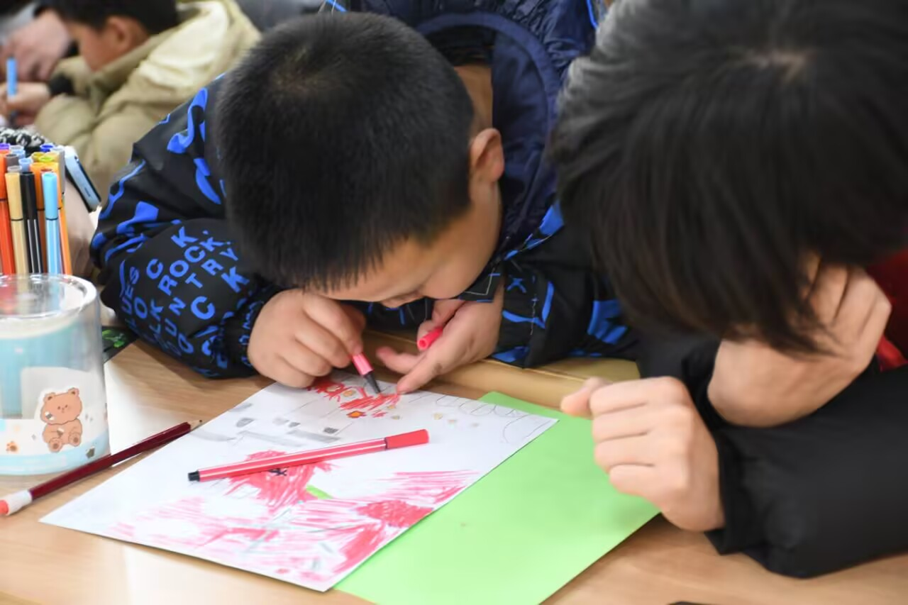 活动伊始,主讲人以一首《清明》引出本次活动的主题。互动环节中,主持人播放了一段生动有趣的清明习俗动画视频,向小朋友们介绍清明节的由来,加深小朋友对清明节的了解。活动尾声,小朋友们观看革命先烈英勇的事迹,随后,他们拿起画笔,通过绘画先烈与清明的图案,将革命先烈的壮烈形象以及清明节的传统意象牢记于心。