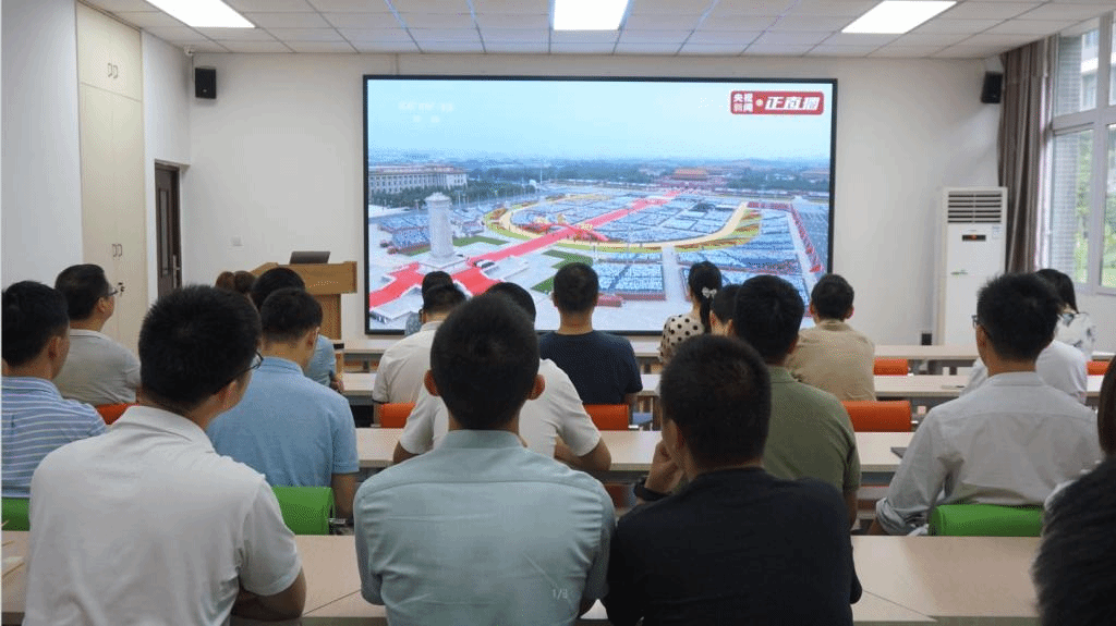 7月1日上午,环化公司党总支组织全体师生收看了庆祝中国共产党成立100周年大会。公司党总支精心组织,采取集中和分散相结合的方式进行。60余名师生在慎思楼4-206集中观看,其余师生在教室、寝室、食堂等场所分散观看。