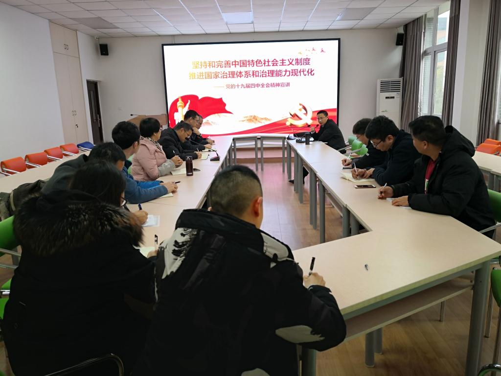 12月31日,公司副董事长付川为环化公司班子和部分科级干部代表、博士教师代表宣讲了党的十九届四中全会精神。