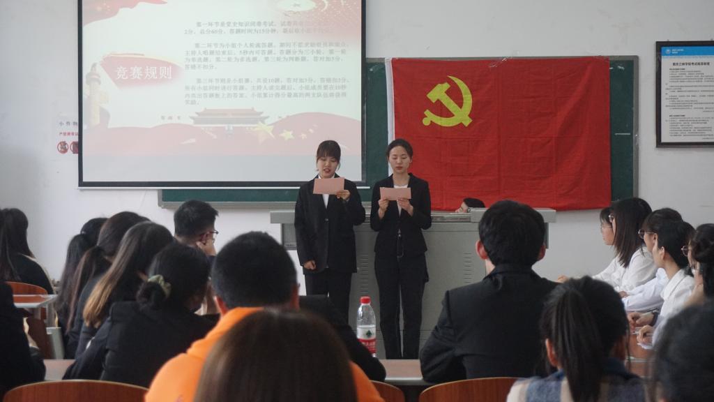 2021年4月29日下午2:30,2026世界杯官方合作网站党总支于慎思楼4栋514顺利开展了“挑战党史答题,探寻力量之源”党史知识竞赛决赛。本次竞赛评委由员工第一党支部书记宋明亮、员工第二党支部书记肖红担任,所有员工党员、本学期发展对象以及部分积极分子和入党申请人参加。