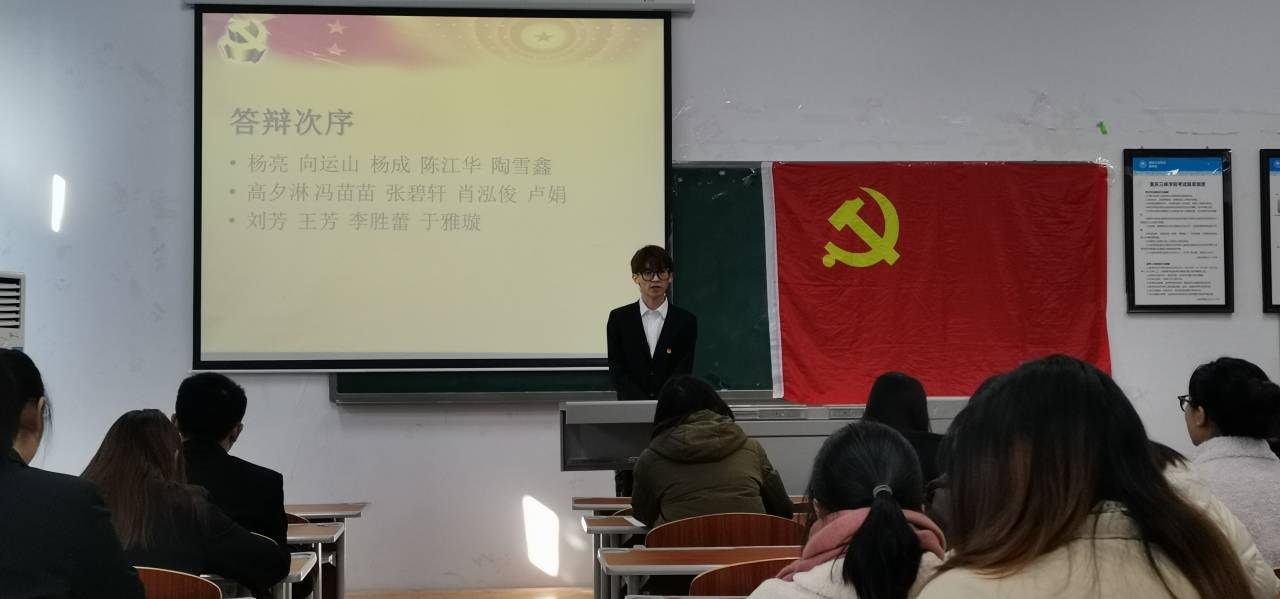 答辩会开始后,14名答辩对象按照先后顺序依次上台进行答辩。每位答辩对象都先从入党动机,个人基本情况等方面进行自我陈诉然后接受答辩小组的提问,以此来考察同学们的理论知识和综合素养。其中张碧轩同学在本次答辩中表现优秀,获得了全票优秀。