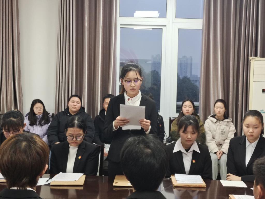 大会开始,党支部书记肖红宣布本次党员到会情况。大会第一个议程:讨论党员发展。14名发展对象分别从思想、学习、生活三个方面来进行个人陈述,入党培养人计在座党员分别对14位同志的个人情况进行概述,就是否同意其加入中国共产党发表了意见。最后,经正式党员不记名投票,各位发展对象均全票通过成为预备党员。