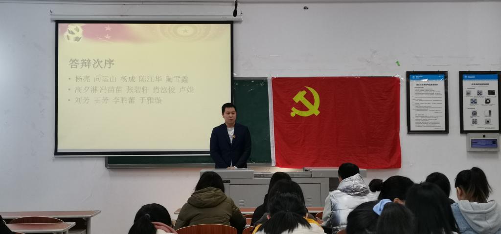 答辩会开始后,14名答辩对象按照先后顺序依次上台进行答辩。每位答辩对象都先从入党动机,个人基本情况等方面进行自我陈诉然后接受答辩小组的提问,以此来考察同学们的理论知识和综合素养。其中张碧轩同学在本次答辩中表现优秀,获得了全票优秀。