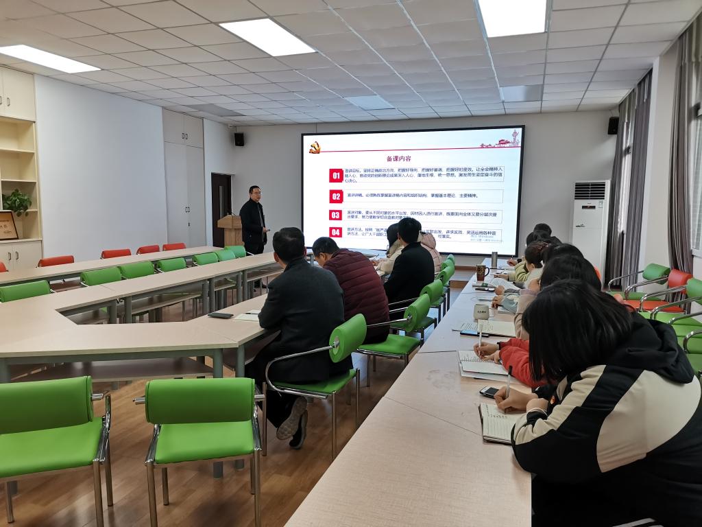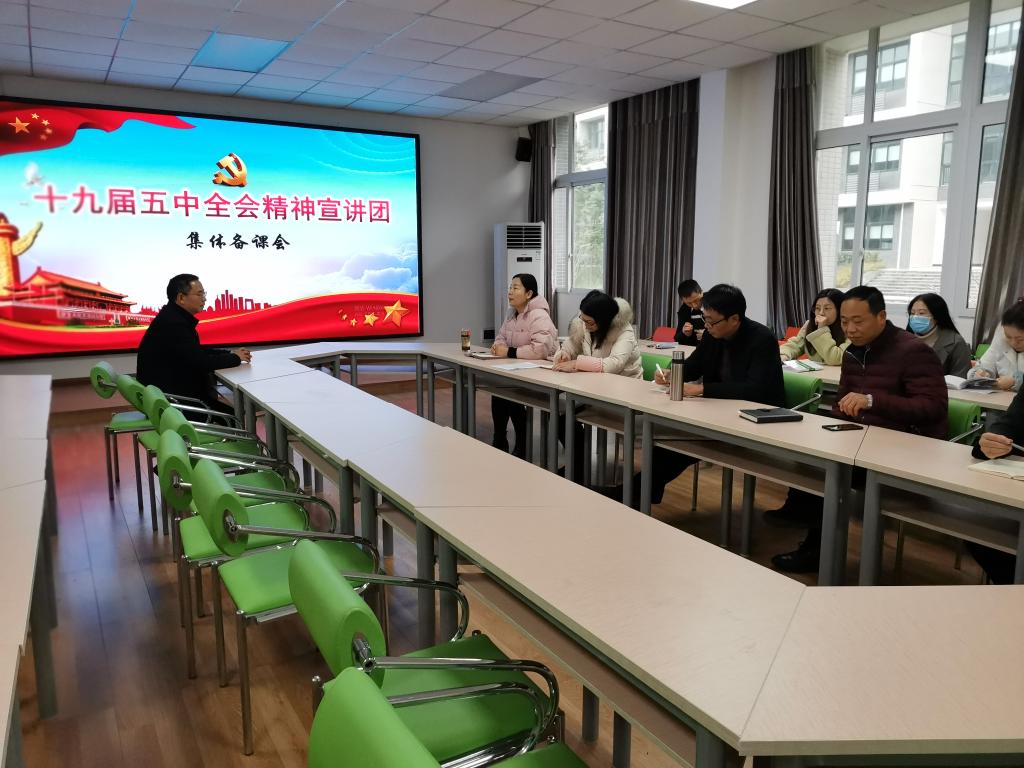 胡均国作集体备课辅导。他从全会的基本情况;全面把握我国进入新发展阶段的重大意义、有利条件和重要特征;全面把握新发展阶段的目标任务;全面构建新发展格局的战略构想和重要着力点;坚持党的全面领导,动员各方面力量为实现“十四五”规划和2035年远景目标而团结奋斗五个方面进行了宣讲阐释,宣讲中,他结合具体的实际案例,让宣讲内容易懂。他建议公司宣讲团成员要根据不同年级、不同专业找准切入点和着力点,把好导向,增强效果,要注意活用案例,增加宣讲趣味性和互动性。