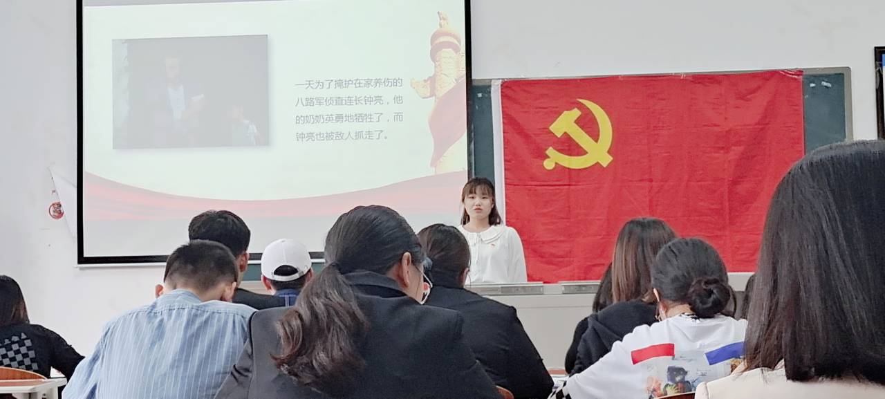 本次活动分为初赛和决赛。初赛由参赛选手通过录制短视频讲党史故事,共计31人参赛,经评审,15位选手进入决赛。决赛现场,参赛选手依序上台宣讲,评委老师根据其演讲内容、演讲技巧以及综合表现对选手进行打分。台上,选手们信心十足,他们有的慷慨激昂,有的深情低诉,有的娓娓道来,台下同学们听得也非常认真,整个活动掀起了一个又一个高潮。选手们用一个个精彩的故事,将一个个生动的人物形象展现在我们面前。有不惧危险,舍身炸碉堡的董存瑞;有尽心尽力接济工人的“赛诸葛”杨培生;更有年仅八岁就英勇牺牲的小萝卜头……一幅幅动人的画面,一段段感人的故事,都在述说着今日这来之不易的幸福。活动最后,党支部书记肖红给获奖选手颁发奖品并合影留念。