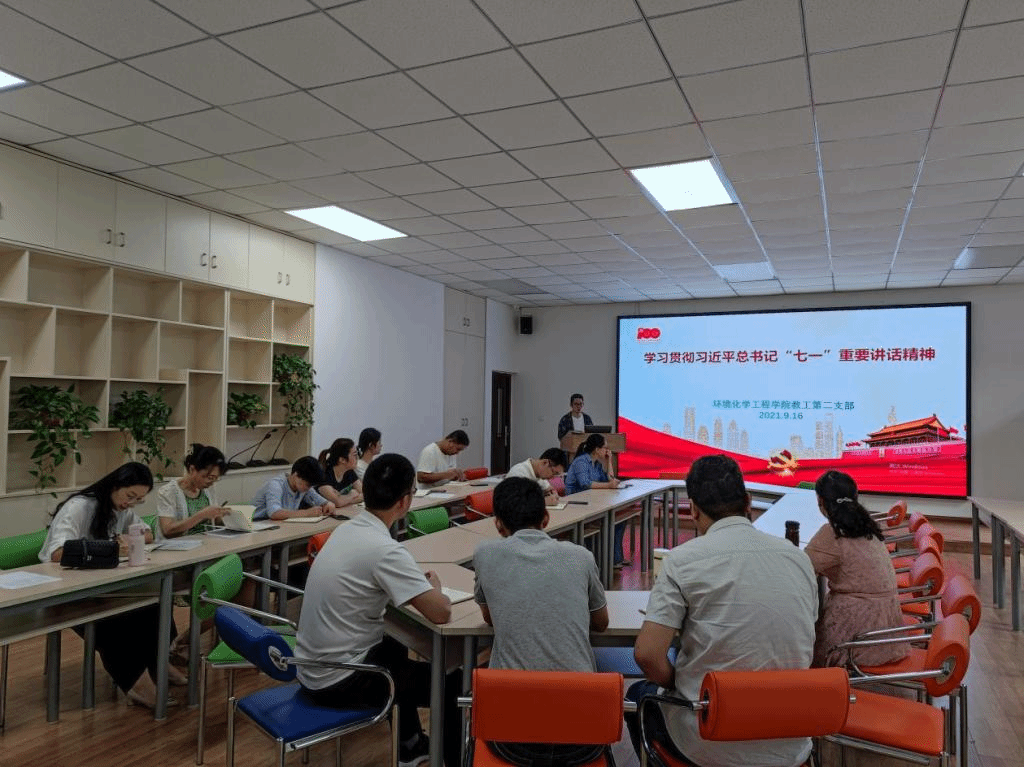 2021年9月16日下午,环化公司教工第二党支部在慎思楼4-206会议室开展9月主题党日,集中学习习近平总书记“七一”重要讲话精神,会议由党支部书记宋先雨主持,支部20名党员参加。