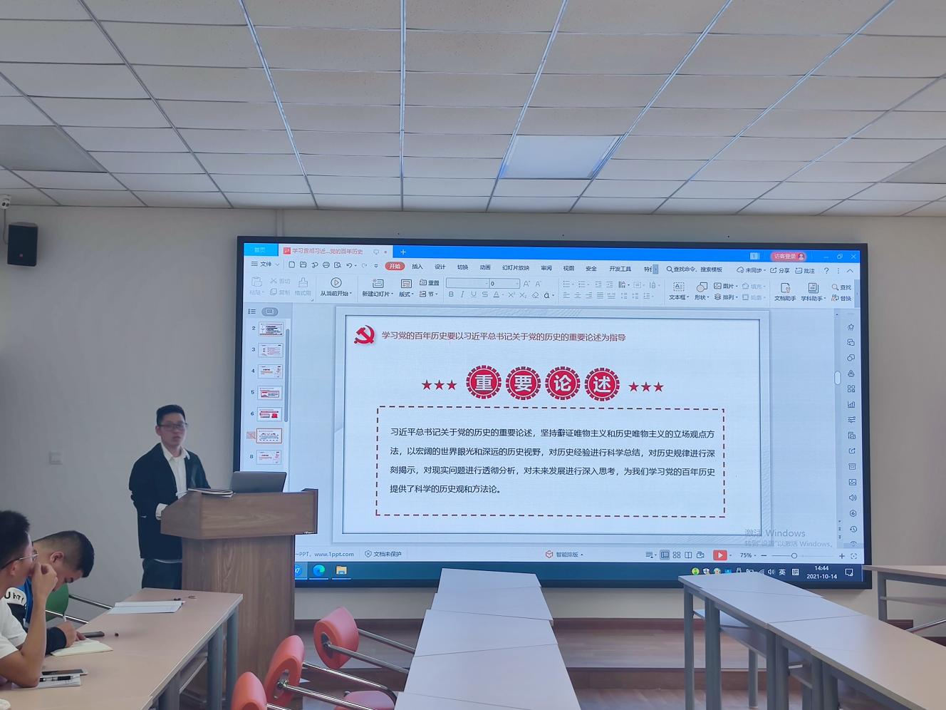 10月14日,环化公司教工第二党支部在慎思楼4-206开展10月主题党日活动,会议由党支部书记宋先雨主持,17名党员参加。