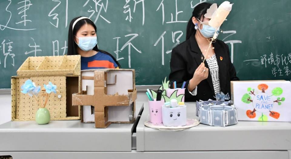 活动前,党员自愿报名,支委随机确定小组成员,以5人一组方式参加活动。活动中,7组选手用自备或支部提供的废旧纸板、塑料瓶等材料,以变废为宝的创新理念进行创作,创作时间为45分钟。在制作期间,各小组盛情邀请发展对象及积极分子参与其中。制作完成后,每组派1名成员上台展示制作成果,并附1-2分钟的创作理论讲解,有创意来自冬奥会的和平鸽子灯、有亲子互动迷宫、有收纳盒、存钱罐、笔筒、手工插花等等。活动结束后,支部将在“环化学子”微信公众号展示作品并进行为期三天的投票,得到最终比赛结果。