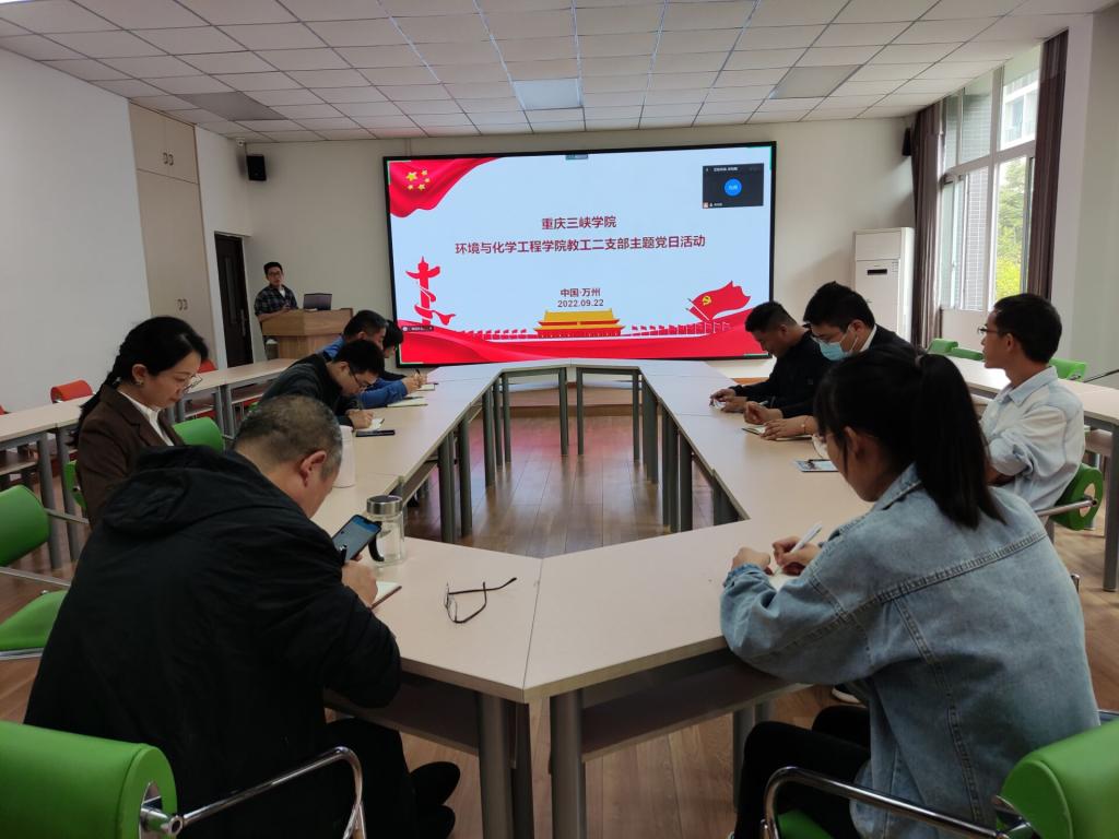 2022年9月22日下午在慎思楼4-206会议室,环化公司教工第二支部开展9月主题党日活动,会议由党支部书记宋先雨主持,全体20名党员参加。