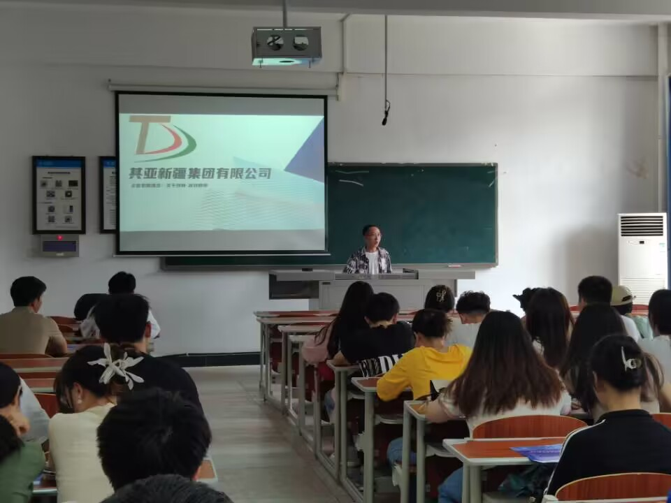 首先,其亚集团人力资源部李总向在场同学播放了新疆其亚集团有限公司的视频宣传片,让大家对该集团的生产区域、员工生活和住宿等方面有了更直观的了解。随后,通过PPT的形式,李总详细介绍了本次招聘的专业、岗位、条件以及薪资福利待遇等信息,为同学们提供了更多的参考依据。